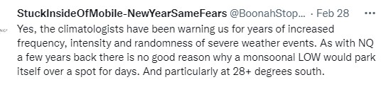 Climatologists and scientists in related-fields have been warning us for years that Climate Change equals increasingly erratic and unstable weather systems. Those warnings have largely been ignored.